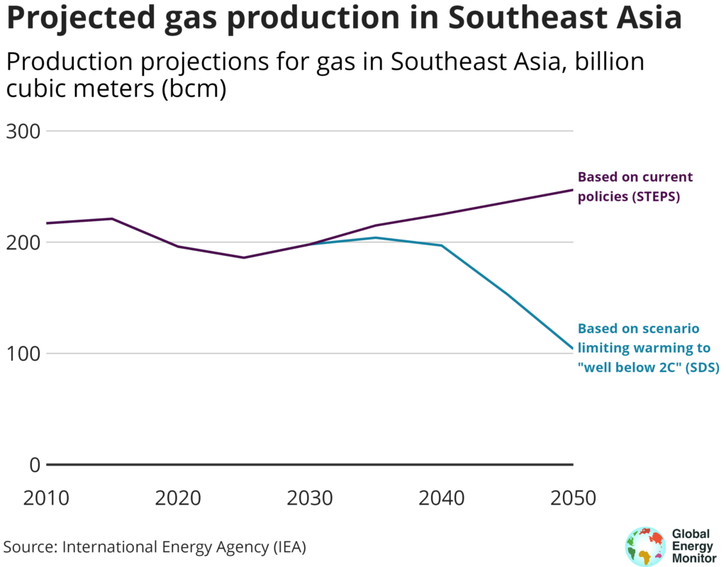 The IEA already expects oil and gas production in Southeast Asia to be about 145 bcm per year higher by the middle of the century than what would be expected in its ‘Sustainable Development’ Scenario.