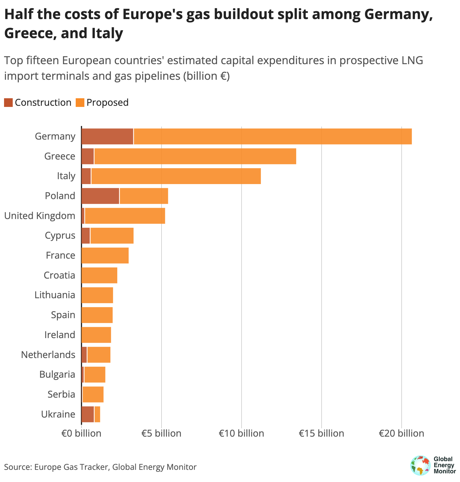 • Germany, Italy, and Greece — which are developing the most gas infrastructure in Europe — are together responsible for half of these costs.