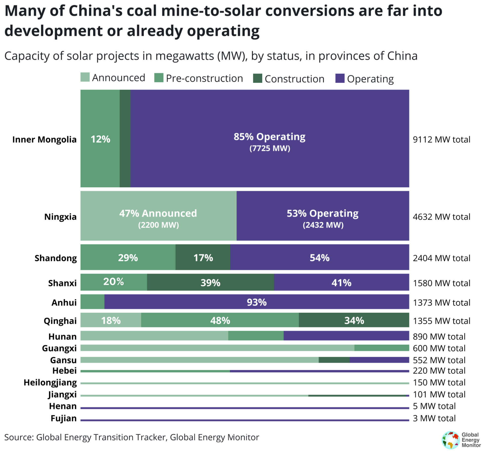 Over one-third (39%) of China’s proposed capacity is already under construction or in test operation, while 14% has been approved, and nearly half (47%) remains in the early stages of planning or development.
