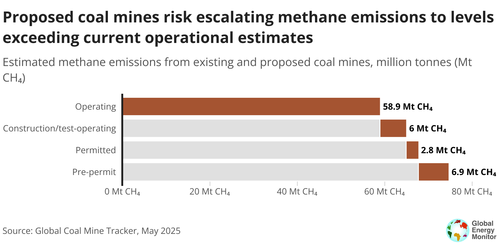 An additional 186 projects, representing approximately 414 Mtpa of coal mining capacity, have already received permits. These permitted projects, currently in the interim phase of development, are expected to generate 2.9 Mt of methane annually unless halted or abandoned.