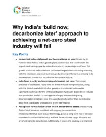 While India’s short-term solutions to reduce emissions without significant modifications to the existing production may lower emissions intensities, India will need to make the grand switch away from coal to fully decarbonize the industry and sustain its production in the long run. India must expand its narrow focus from merely developing large steel capacities to developing green steel capacities, thereby establishing itself as a leader in green steel.