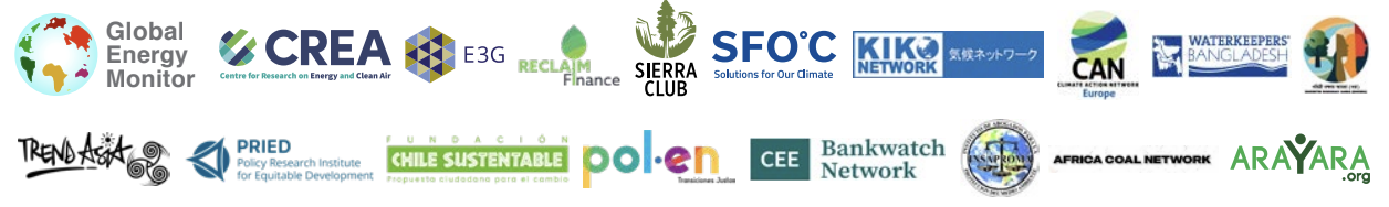 • Global Energy Monitor, CREA, E3G, Reclaim Finance, Sierra Club, SFOC, Kiko Network, CAN Europe, Bangladesh Groups, Trend Asia, PRIED, Chile Sustentable, POLEN, Arayara, Bankwatch, INSAPROMA, and Africa Just Transition Network